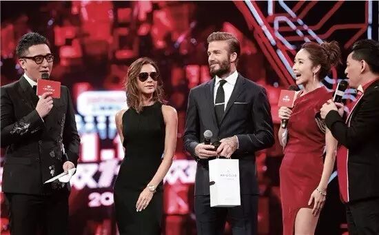 11月10日晚,“2016天猫双11狂欢夜”晚会上演,半个娱乐圈被阿里巴巴拉来为一年一度的“全民剁手”之夜开场,贝克汉姆夫妇也前来助阵。