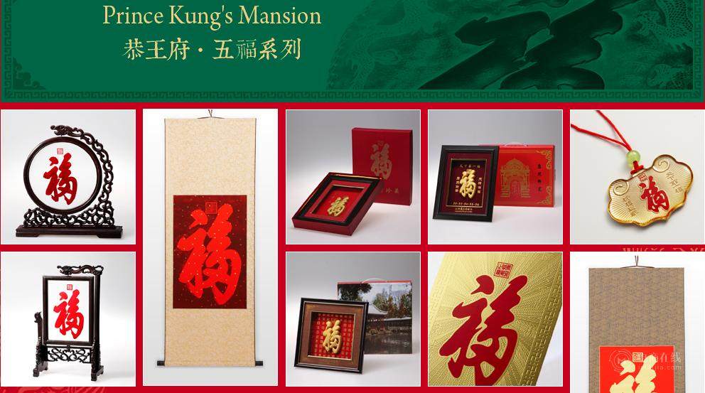 在恭亲王的天猫专营店中,推出产品的主要卖点则是“天下第一福”。北京恭王府的镇园之宝就是康熙皇帝亲笔写的福字碑,每天去王府请福沾福气的游客络绎不绝。